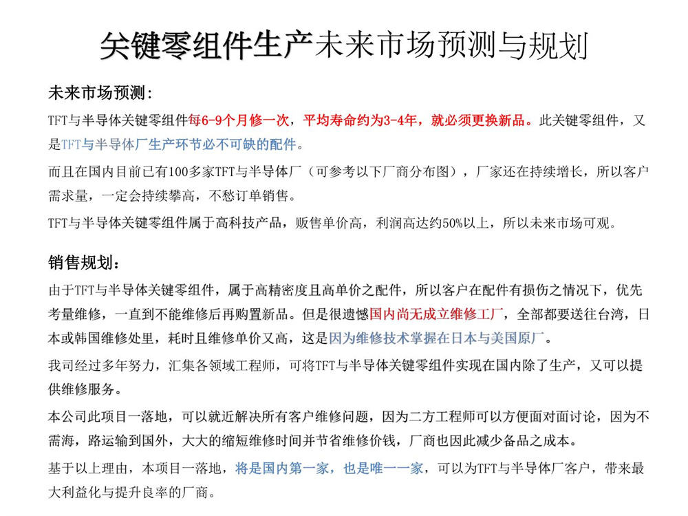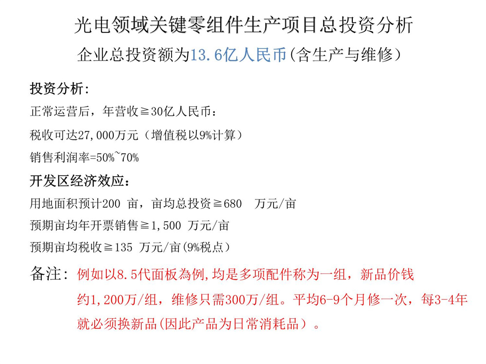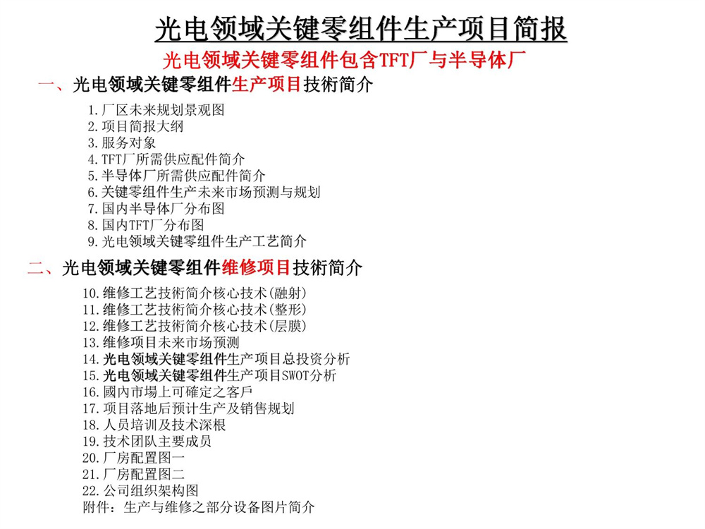 中权光电领域关键零组件生产项目简报2023